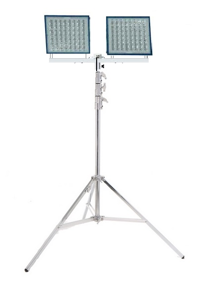 交流移動照明由2盞90W高亮度LED投光燈頭組成。桿體采用3節(jié)伸縮桿作為升降調(diào)節(jié)方式,升起高度2.8米;每盞燈可單獨做上下、左右調(diào)節(jié),整個燈盤以伸縮氣桿為軸心做360°水平旋轉(zhuǎn)。